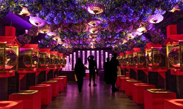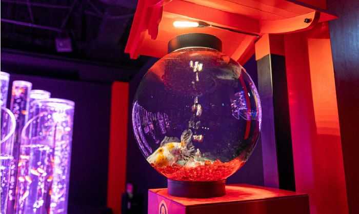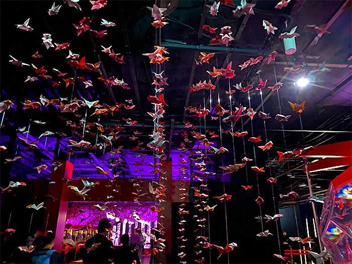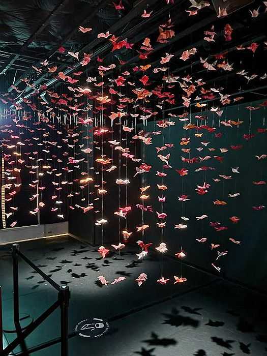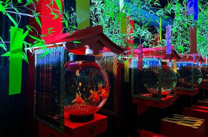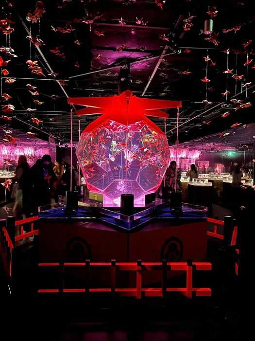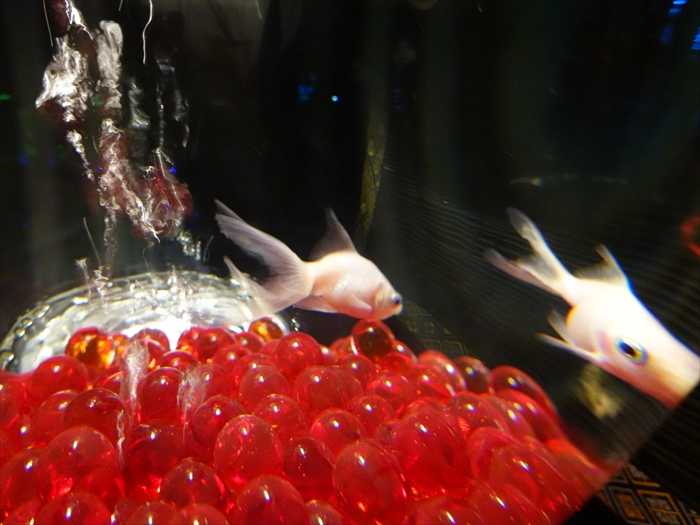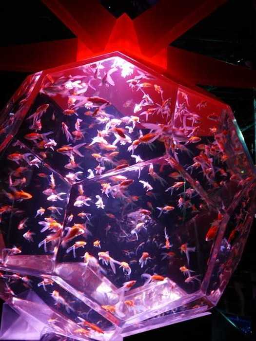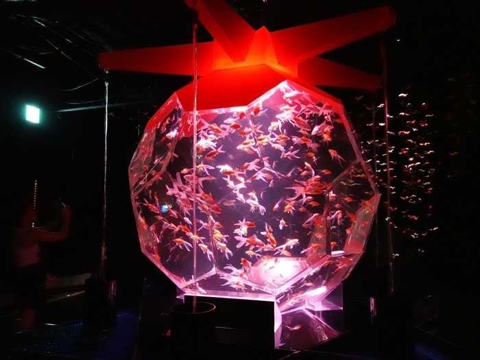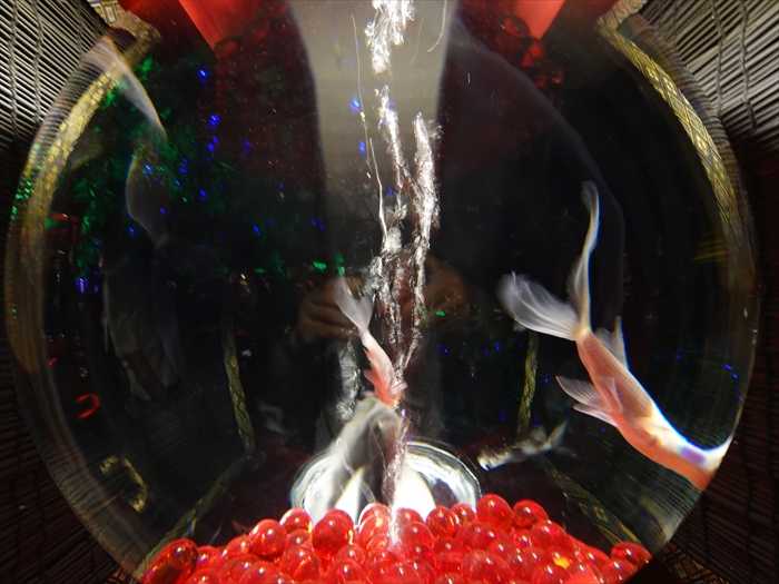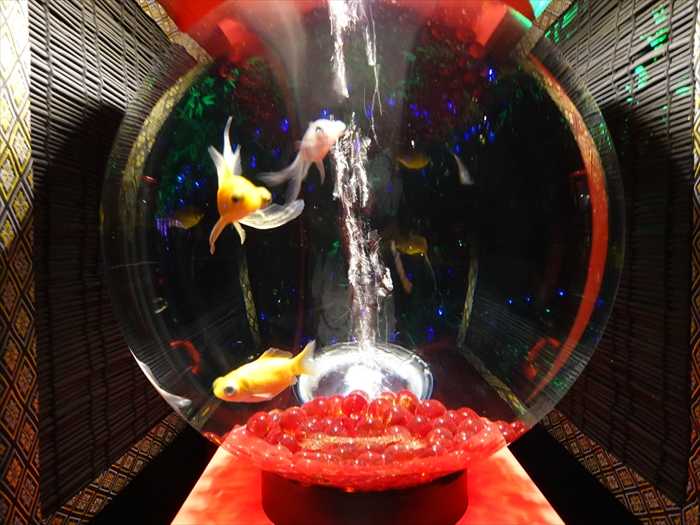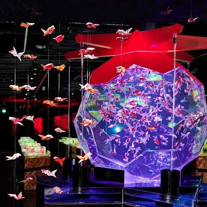 沢山の金魚たちが泳ぐ、ひときわ大きな金魚鉢。日本の美しき伝統「折り紙」に着想を得て、