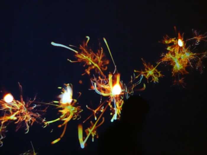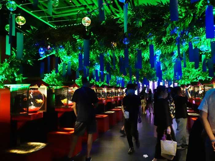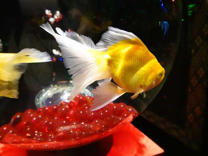 背景を飾るのもまた、折り紙で折られた金魚たち。