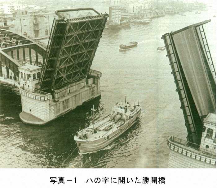 当時は、隅田川を航行する船舶が多く、陸運よりも水運を優先させる可動橋として設計され、