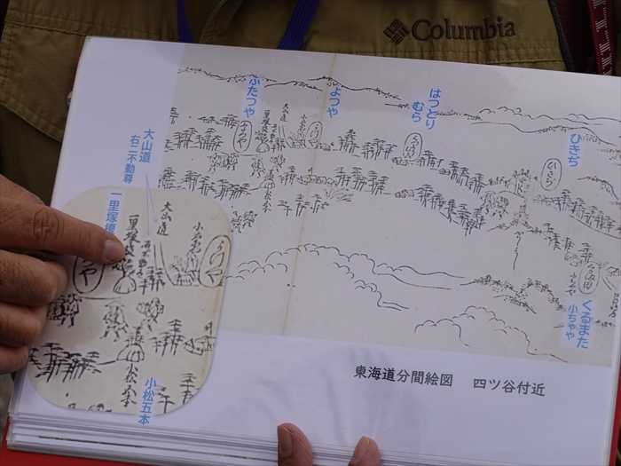 東海道分間絵図 四ツ谷付近 」にここ 「一里塚」の表示がある と説明員の方から。
