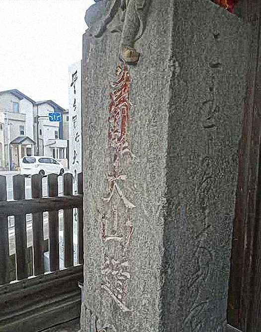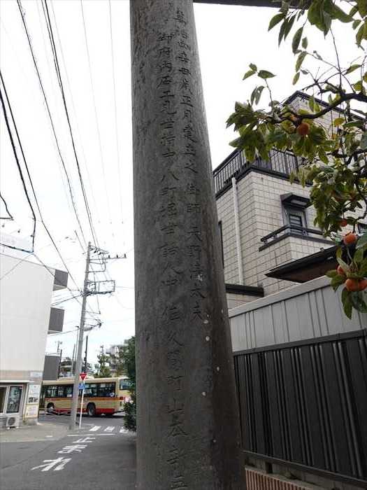 現在のものは延宝四年(一六七六)に江戸横山町の講中によって建てられたものです。この脇に建つ