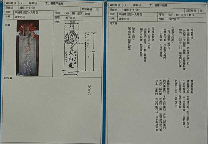 大山道 延宝四年(1676) 」銘があり、江戸横山町の大山講中川建立した