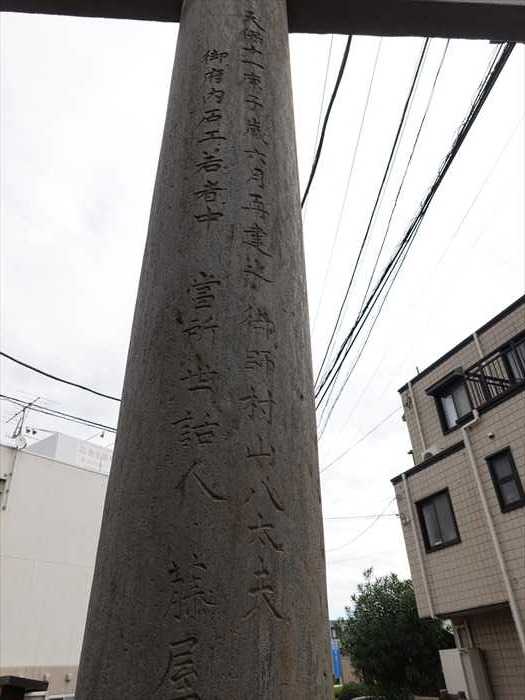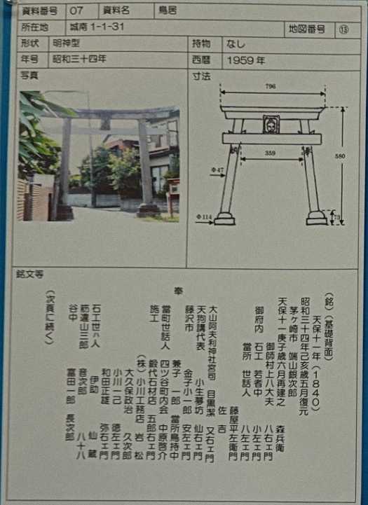 道標の右手の通りにある鳥居は大山阿夫利神社の一の鳥居で、この通りは大山詣りの人々が通った