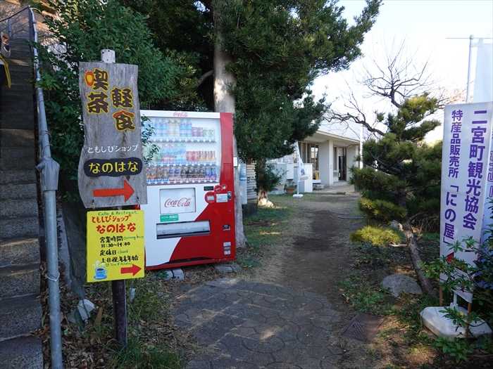 最初の石段を登りきった右側には、カフェ・喫茶の「二宮町 ともしびショップ なのはな」が