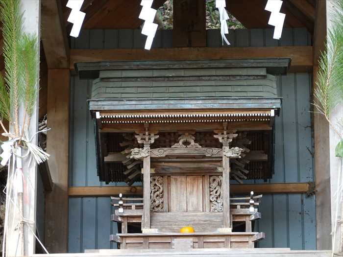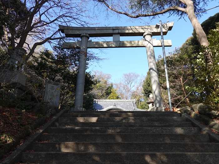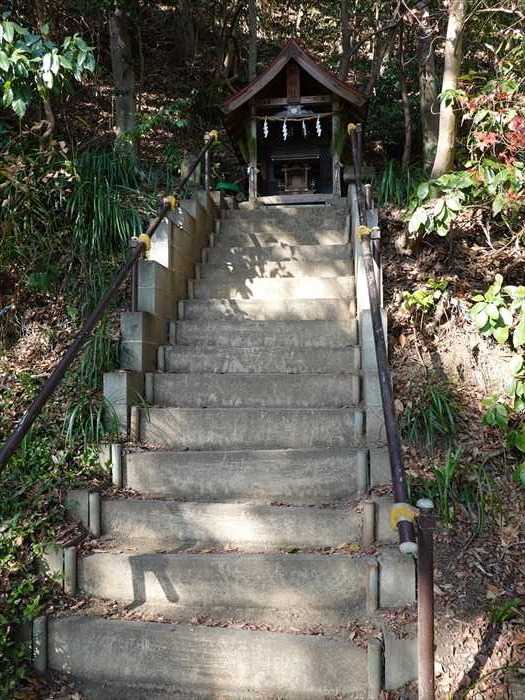 梅澤口 」近くの右手の石段の上にあったのが「 神明社 」。