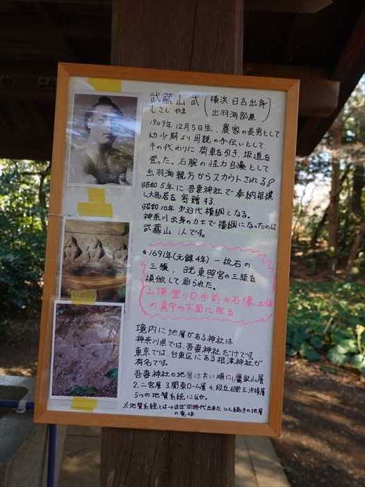 昭和5年に吾妻神社で奉納相撲し、大鳥居を寄贈する。