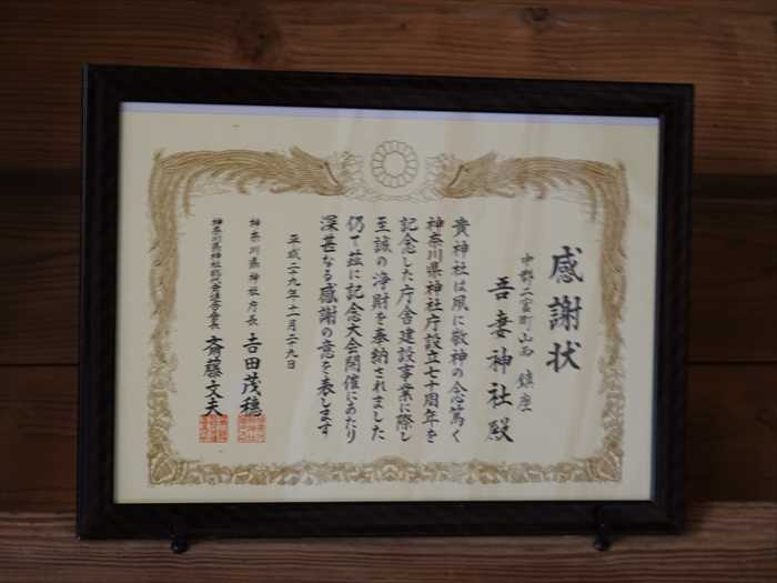 正面に「吾妻神社(あづまじんじゃ)」の拝殿。
