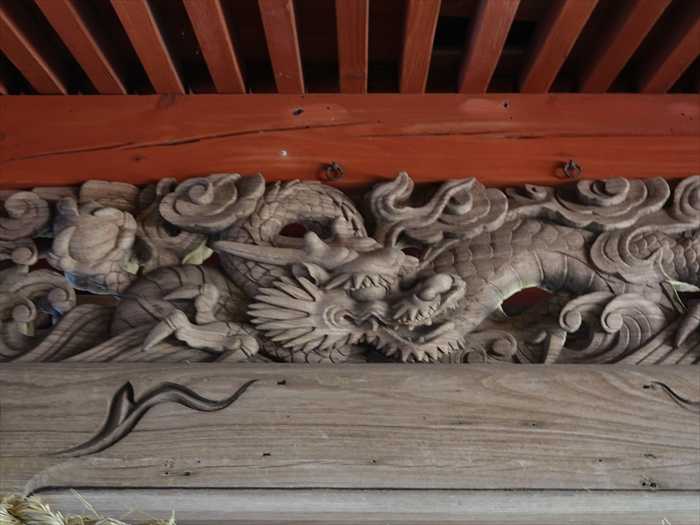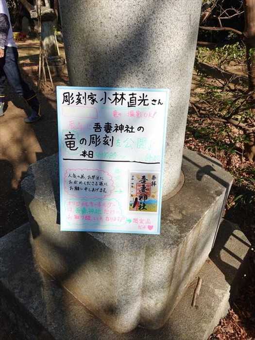 吾妻神社の本殿に刻まれた、「 彫刻家 小林直光さん 龍の彫刻 が見られると。