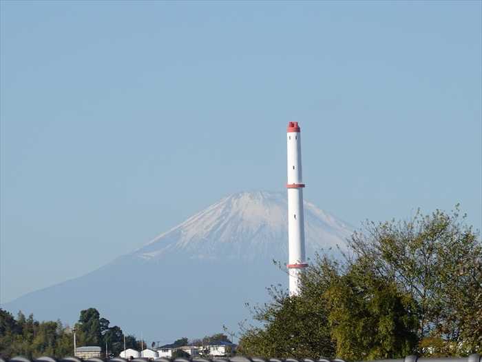 そして「歴代上人御廟所」から 石名坂環境事業所の煙突越しに富士山 を見る。