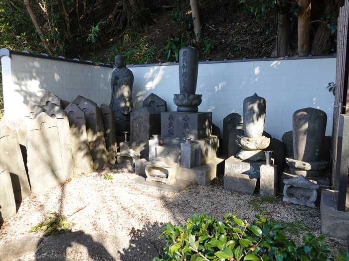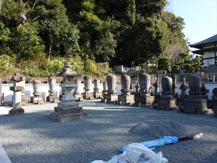 歴代上人 」の 無縫塔 が並ぶ(左側)。