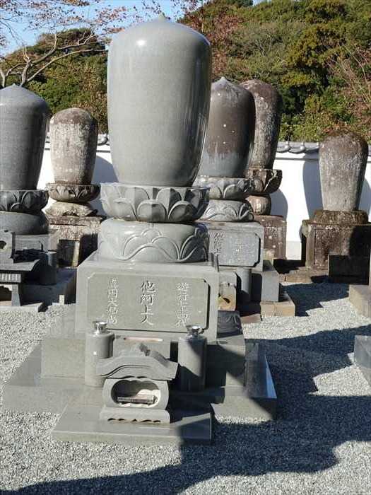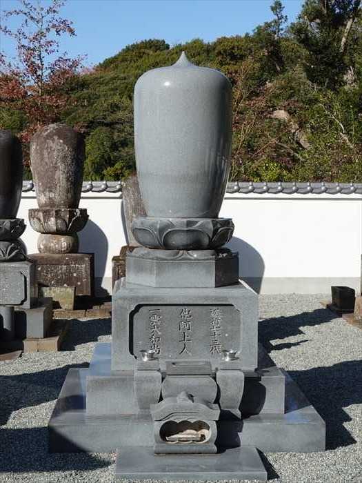 形式としては二種類あり、一つは基礎の上に請花をのせ、その上に丸みをおびた長い卵形の
