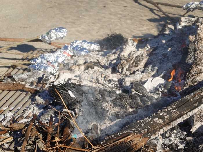 そして漸く下火になり団子焼きのスタート。