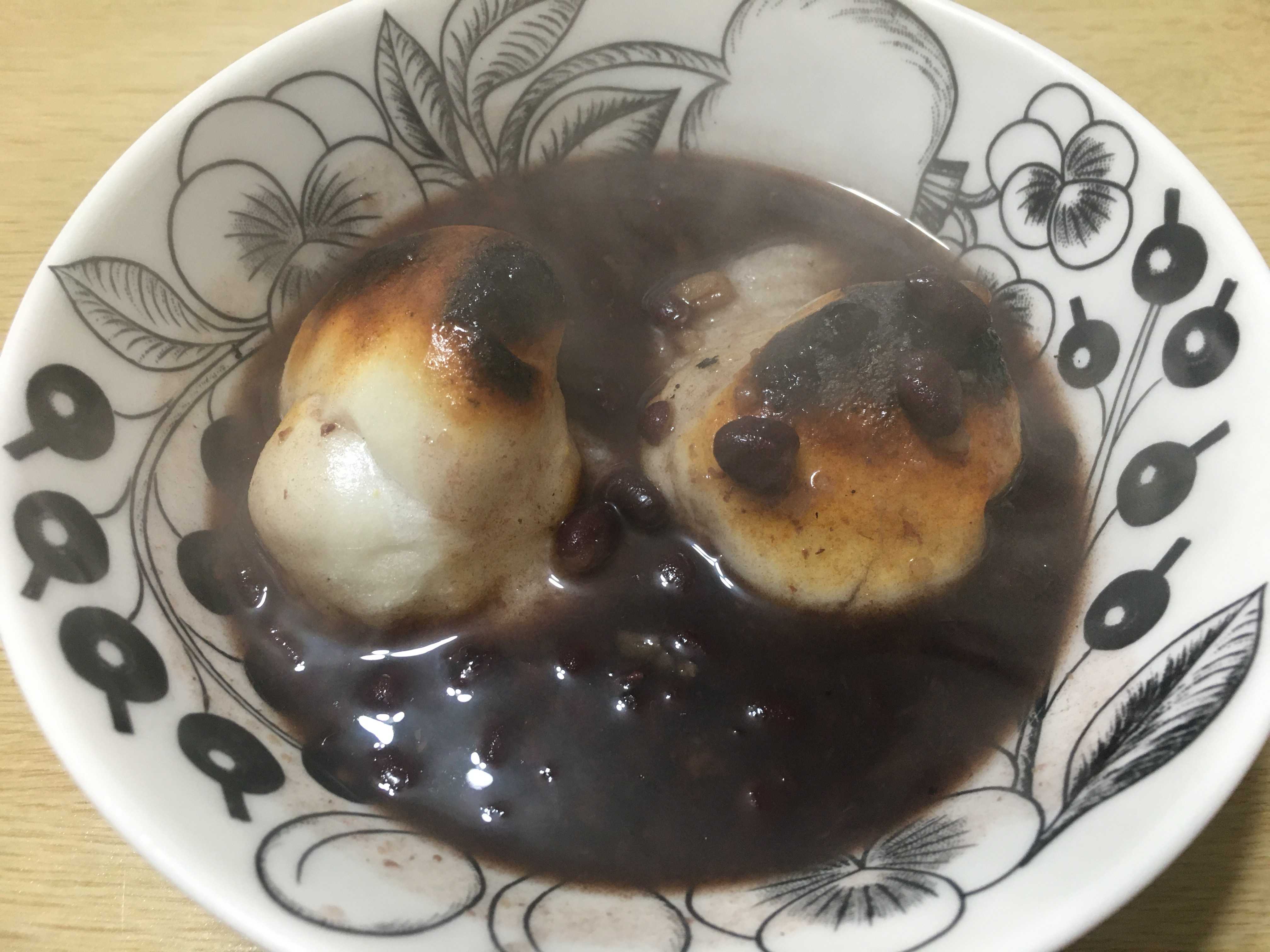 プラスチックのお供えの内部にあった餅を焼いてお汁粉にして。