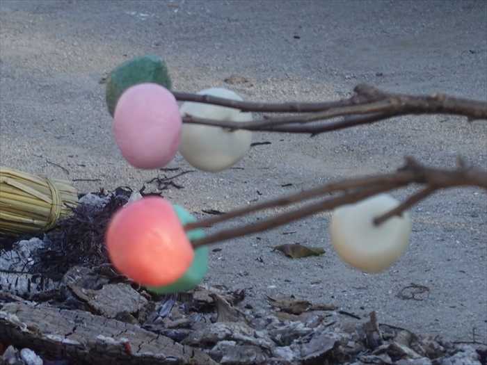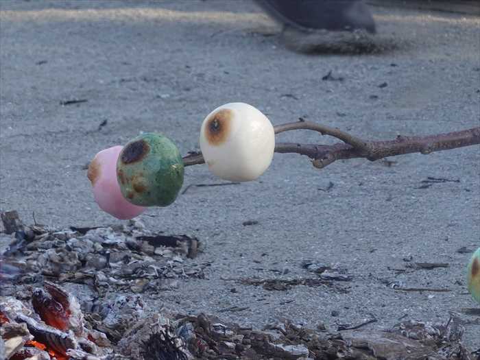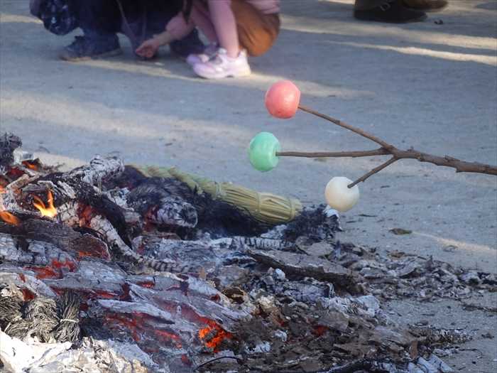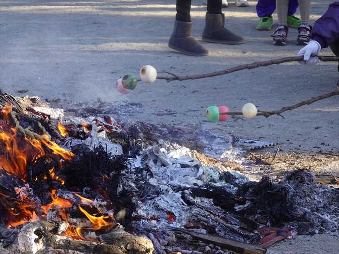 「どんど焼き」の火で焼いた餅、または三色団子を食べると、その年の病を除くと言われて