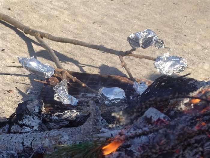 団子をアルミホイールで覆っている家庭の三叉団子が出番を待っていました。