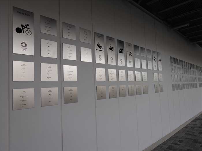 そして競技場の外壁には、2020東京オリンピックの金・銀・銅メダリストの銘板が