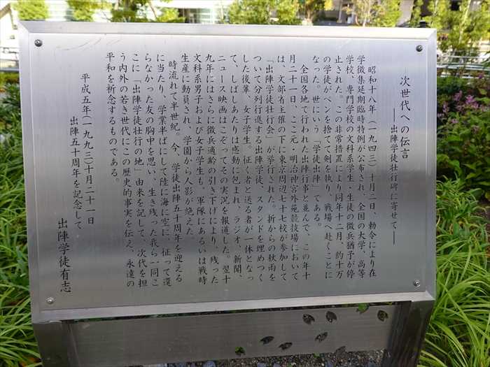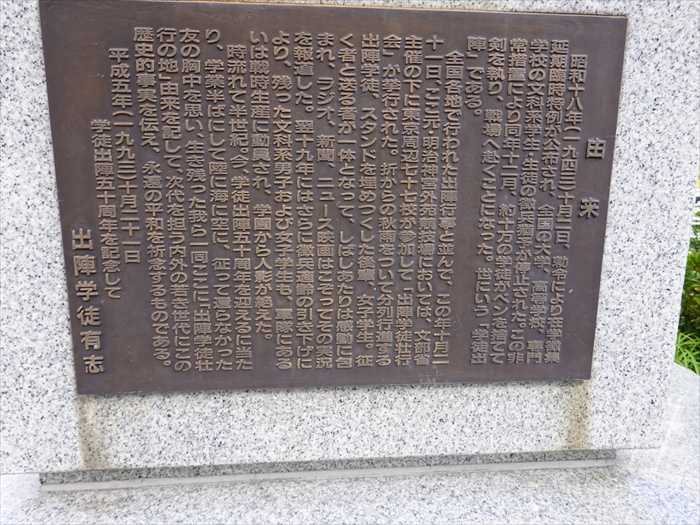 征って還らなかった友の胸中を思い、生き残った我ら一同ここに「出陣学徒壮行の地」由来を