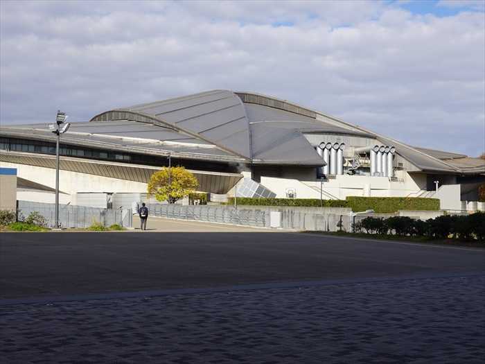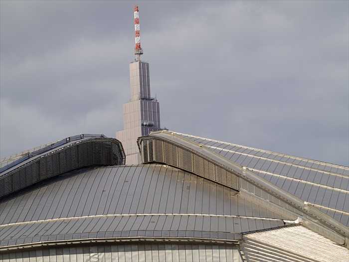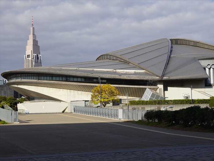 「東京体育館」の屋根から「NTTドコモ代々木ビル(ドコモタワー)」が顔を出して。