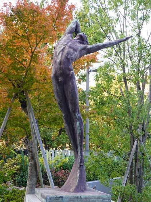 千駄ヶ谷門入り右にあったのが 「波」、作者:吉田三郎