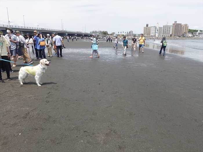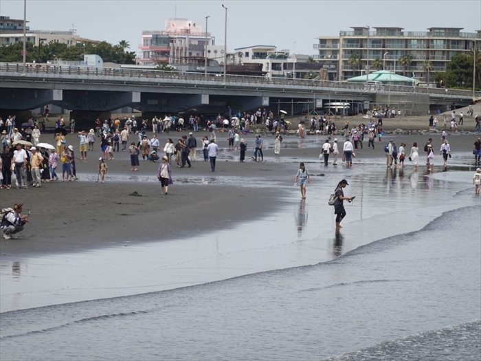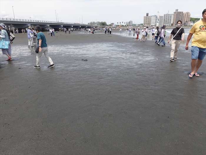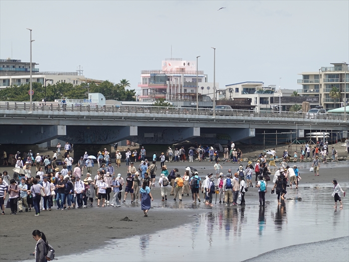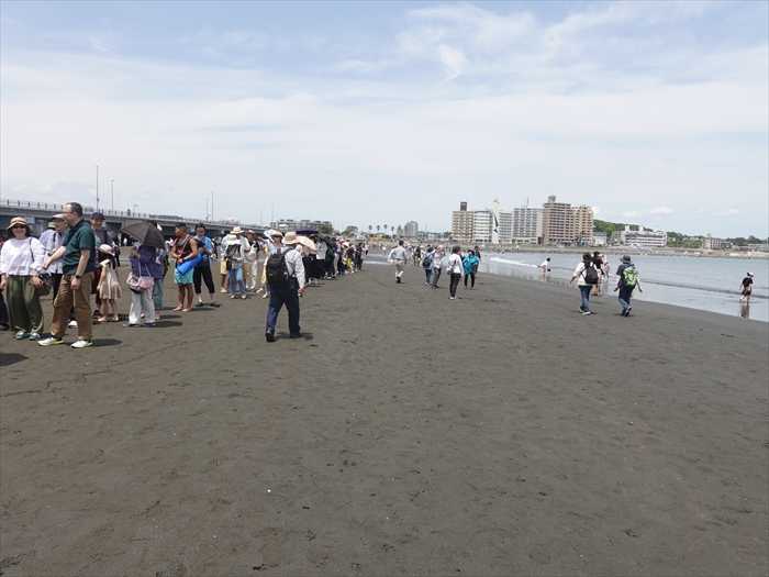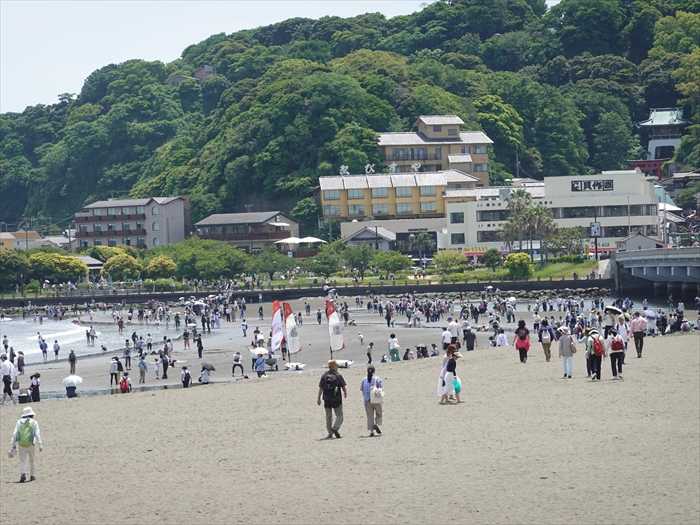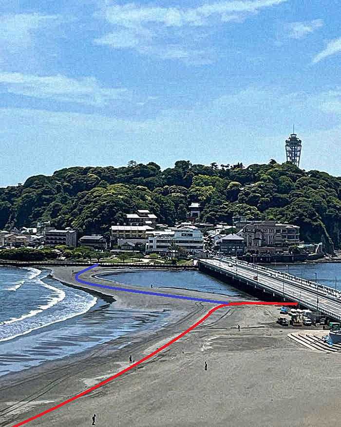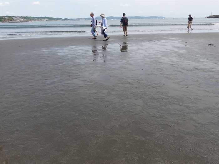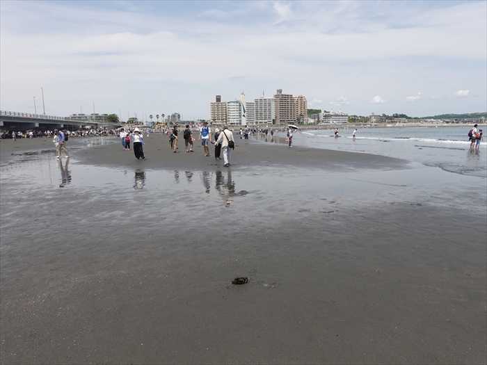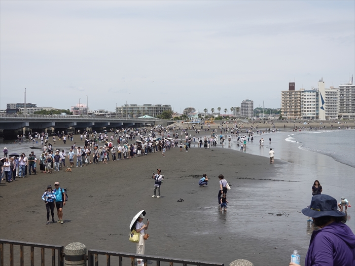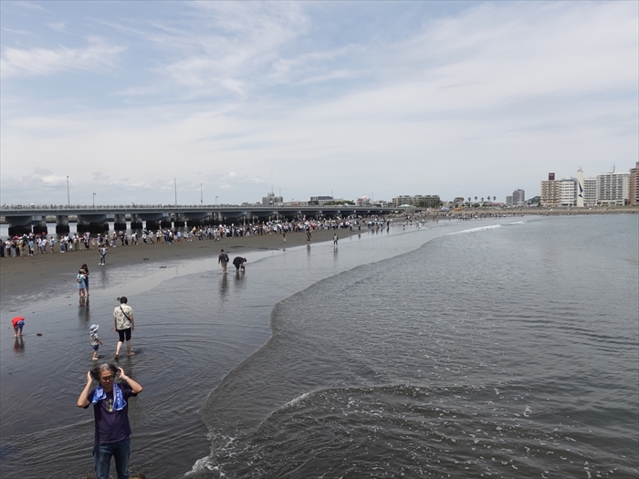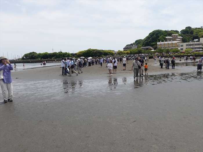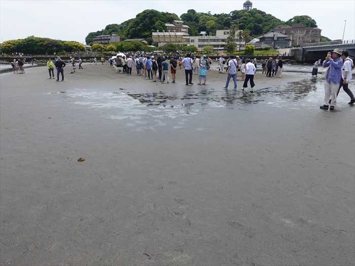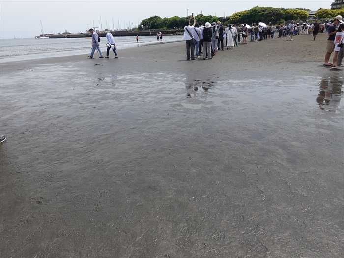 完全に砂浜になった「海が割れた道」を「片瀬東浜」海岸に向かって進む。