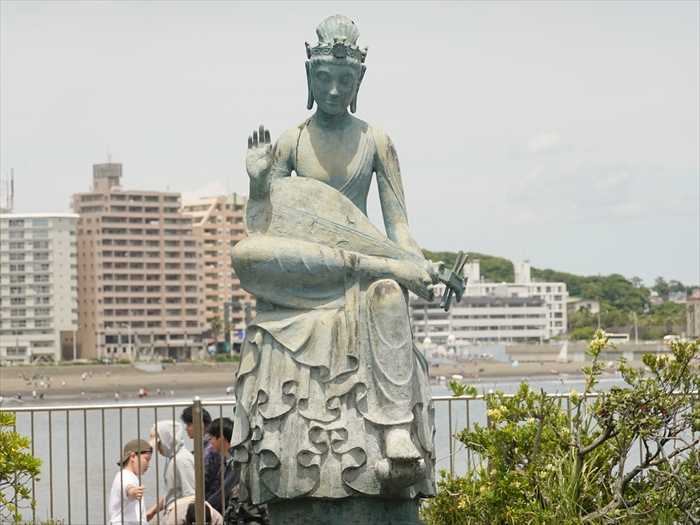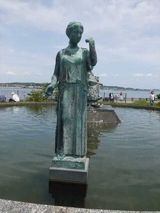 一つであり江の島の象徴であって、この弁財天にちなみ、冥想の弁財天を池の中央に配し
