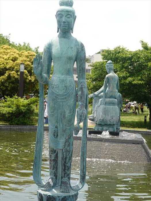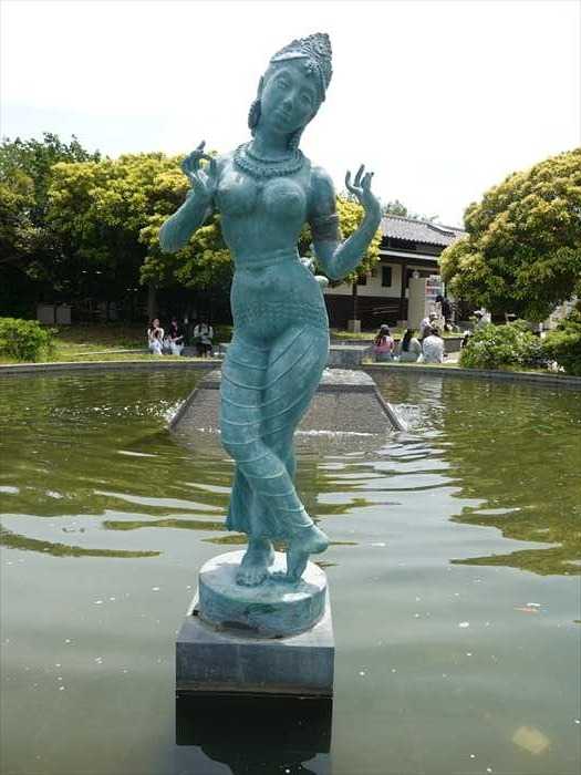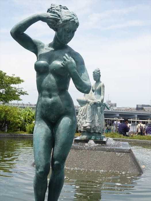 それにふさわしく弁財天を中心として世界女性群像はこの水面の上にたたずみ幾年の歳月を