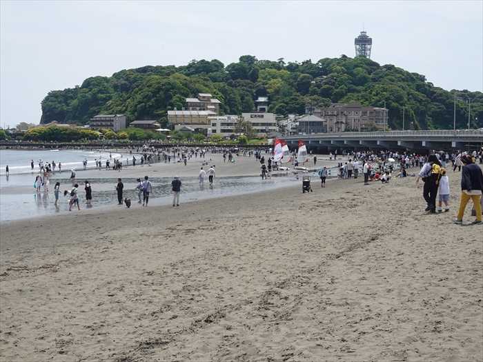 大きく砂浜の拡がった「片瀬東浜海岸」が前方に。