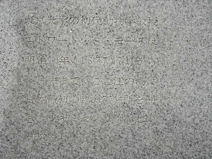 エドワード・S・モース記念碑 日本近代動物学発祥の地 」碑。