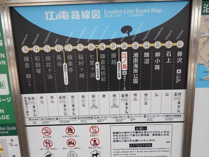 江ノ島、鵠沼(一部)、藤沢の5駅に設置されており、その他の駅のすべての出入口には