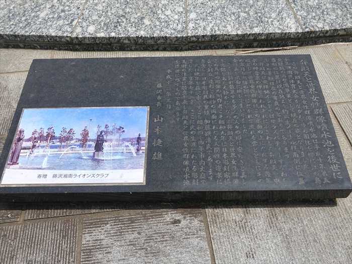 湘南港北緑地広場 」にあった「 弁財天と世界女性群像噴水池 」でしばしの休憩。