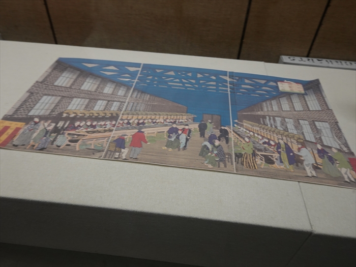 東京海運橋兜町為換座五階之図 三枚続 国輝画 」をネットから。