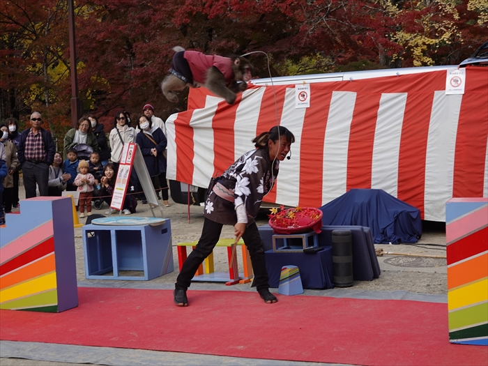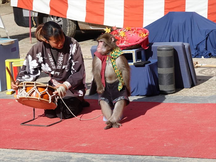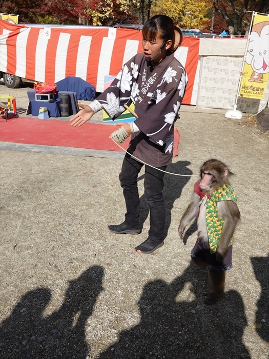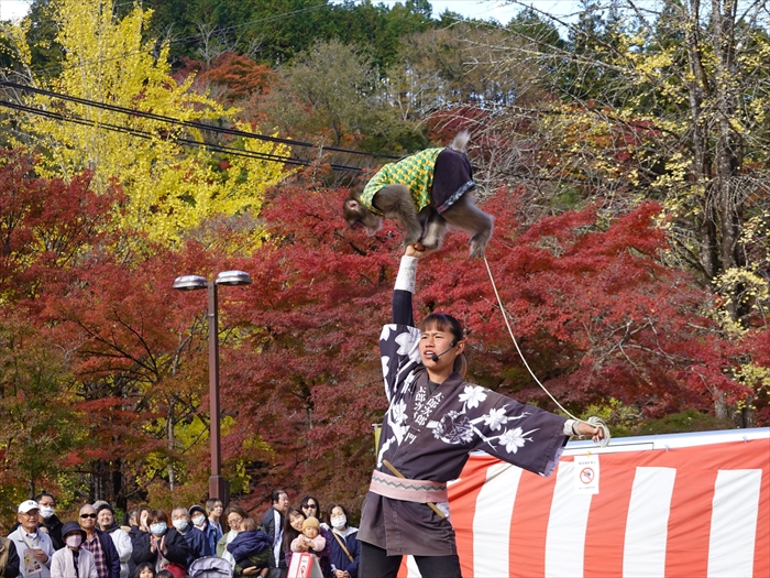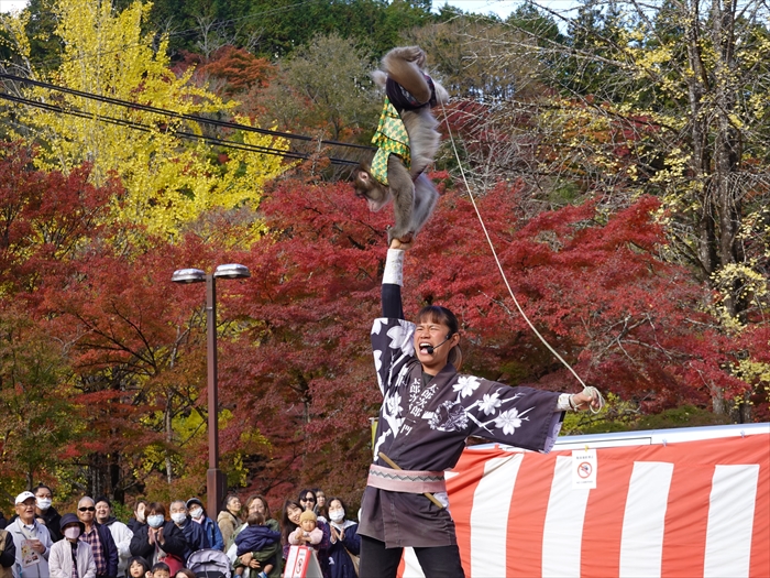 「香嵐渓広場」では「 日光さる軍団 」による「 猿まわし 」が行われるようであった。