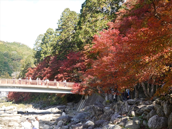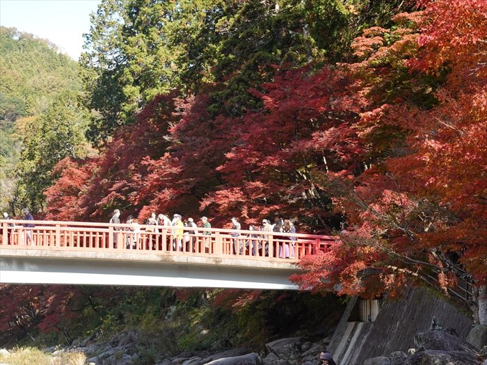 香嵐渓を流れる巴川に架かっている橋。平成19年(2007)に新たに架け替えられた。
