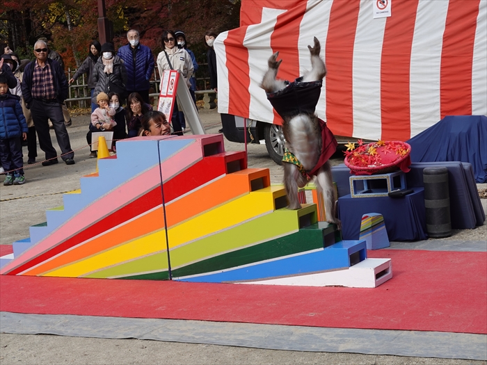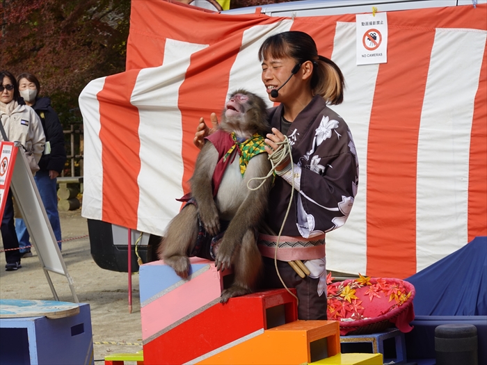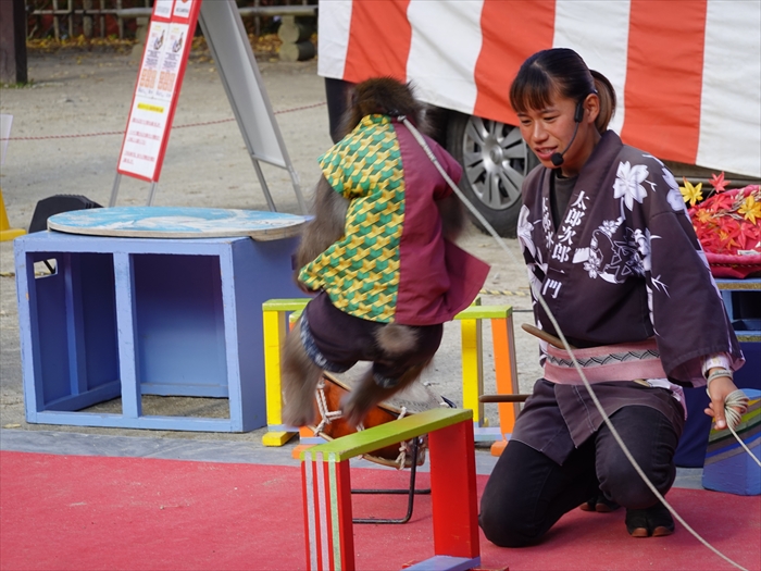 そして、「日光さる軍団」による、芸の披露が始まった。