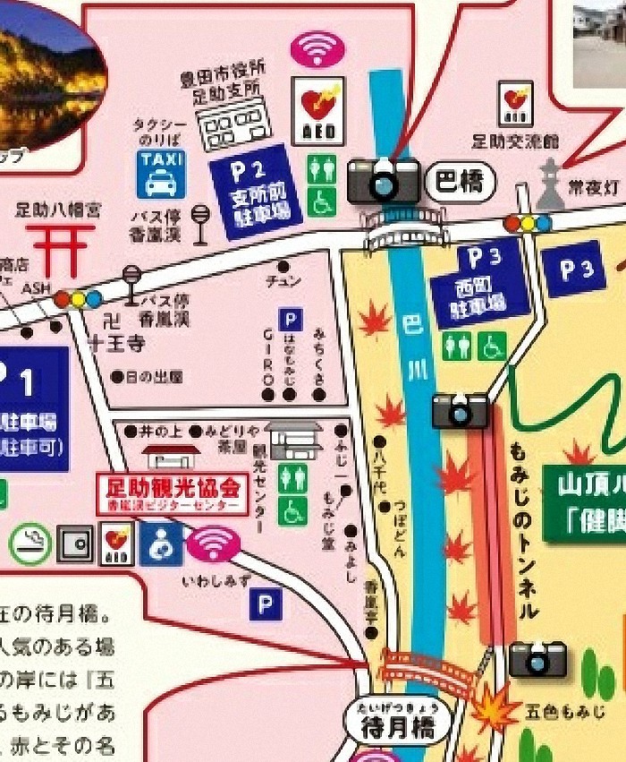 香嵐渓のシンポル的存在の待月橋。撮影スポットとして大変人気のある場所です。