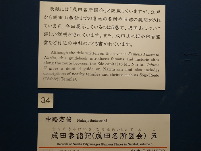 旧跡の説明がされています。今回展示しているのは5巷で、成田山について詳しい説明が