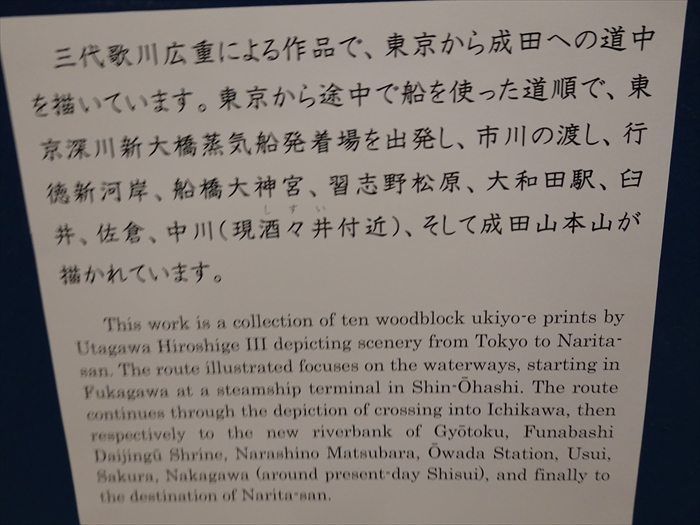 「三代歌川広重による作品で、東京から成田への道中を描いています。東京から途中で船を
