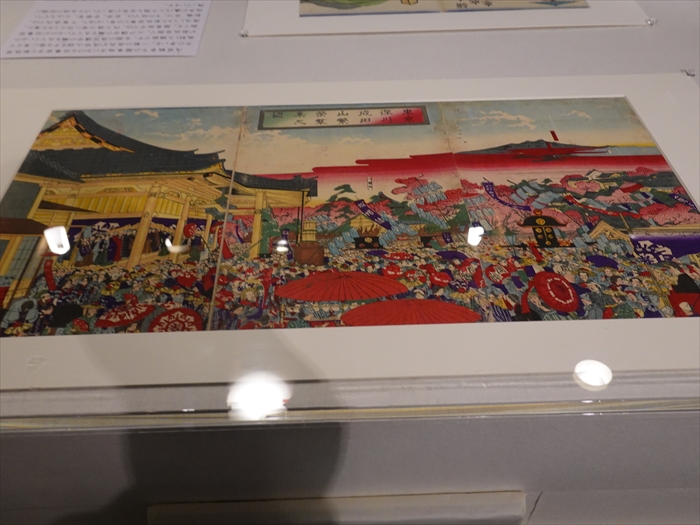 「明治十八年の成田山新勝寺の境内を描いた浮世絵です。