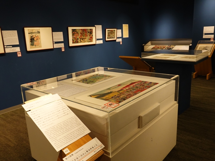 名所絵のほか、明治以降の人々の様子や建造物などを描いた開化絵や風俗画、銅板の地図の