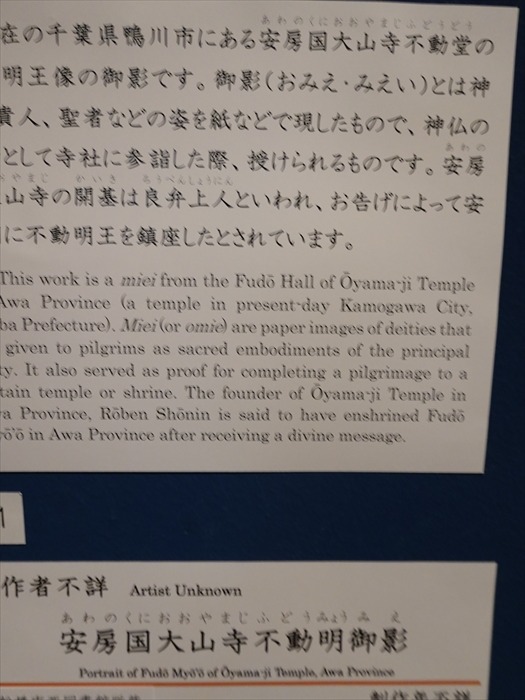 「現在の千葉県鴨川市にある安国大山寺不動堂の不動明王像の御影です。御影(おみえ、みえい)