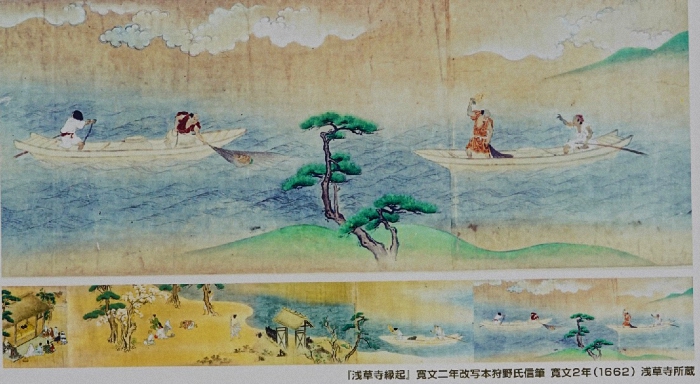 「「 浅草寺縁起 」寛文ニ年改写本狩野氏信筆 寛文2年(1662 )浅草寺所蔵」。