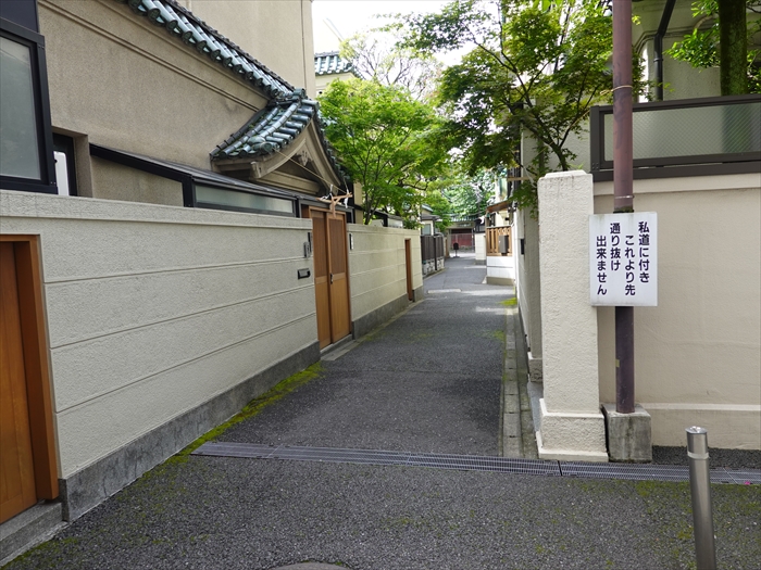 都道319号線側から子院群の中にある路地を見る。