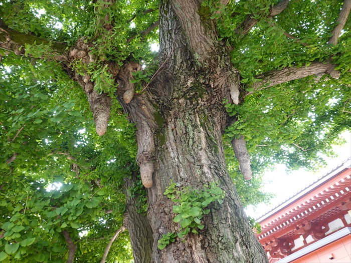 「浅草寺」の「本堂」の裏 大銀杏 」。