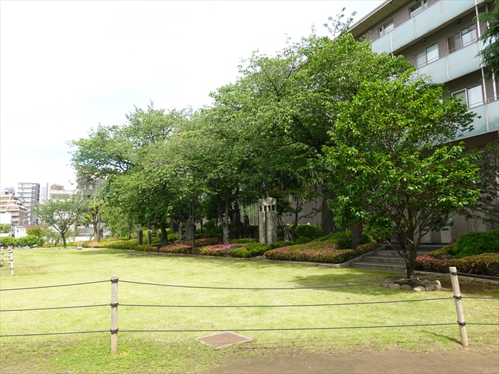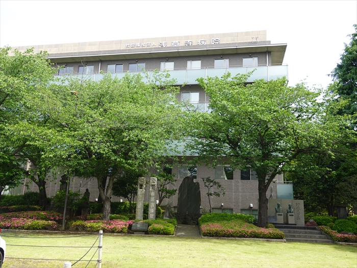 石碑・石像群の裏には「 浅草寺病院 」。