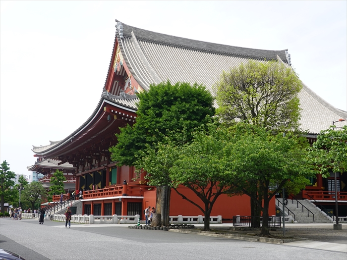 「浅草寺」の「本堂」を子院群前から振り返る。