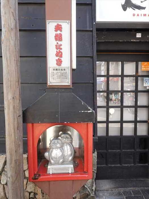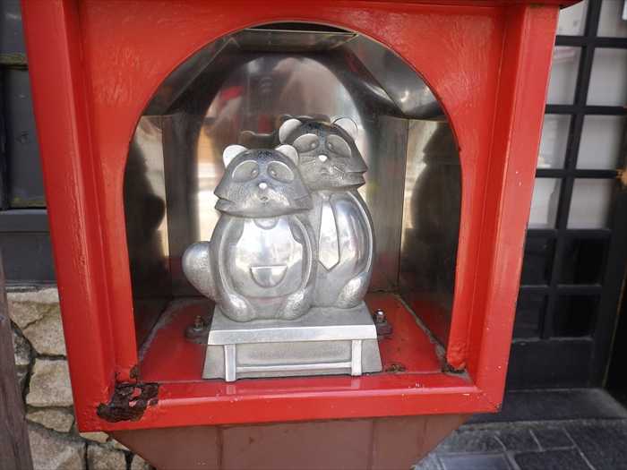 お店は全部で26店舗。この「たぬき通り」には銀色に光る御利益たぬき像が12体11種、