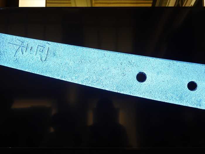 本作は、均一な反りを見せる典雅な姿や「柾目肌」の地鉄、直線的な刃文が特色。700余年の