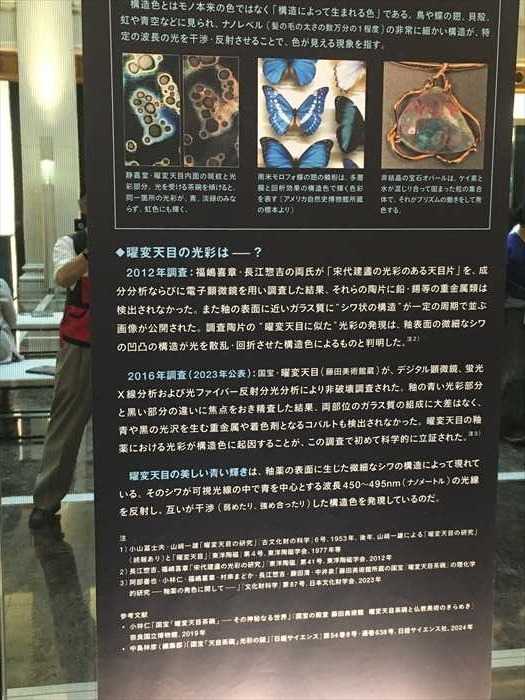 よるものではないことを明らかにした。この研究により、曜変の光彩は光の干渉による「構造色」