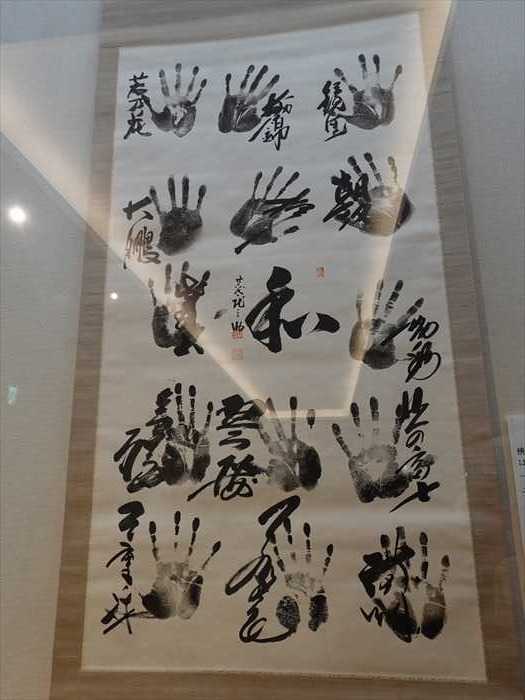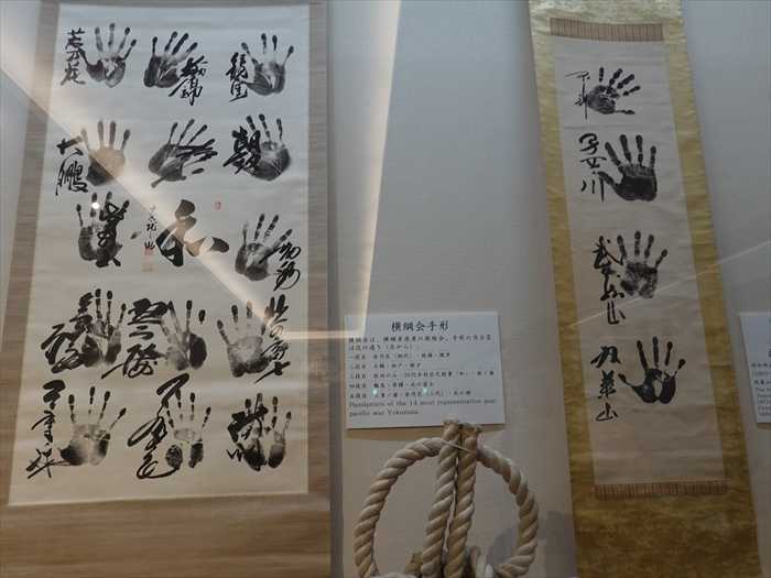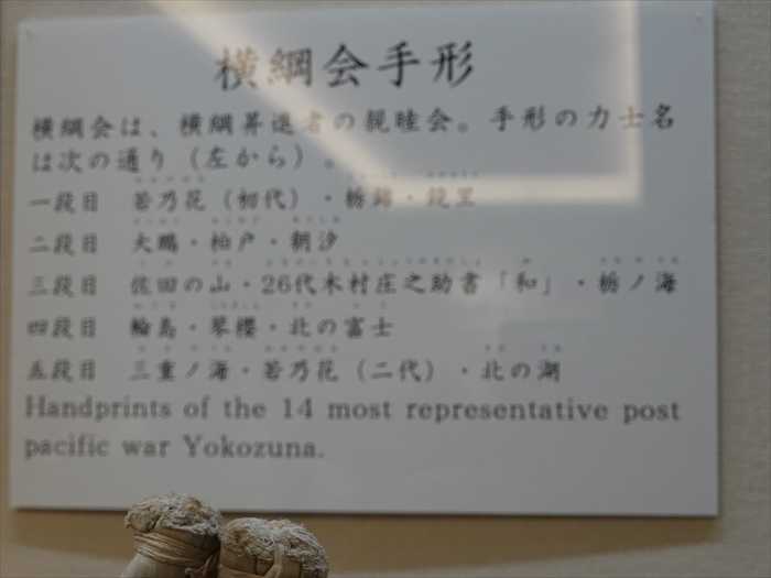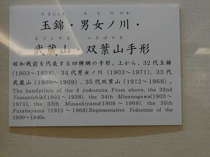 昭和戦前を代表する四横綱の手形。上から、32代玉錦(1903~1938)、34代男女ノ川