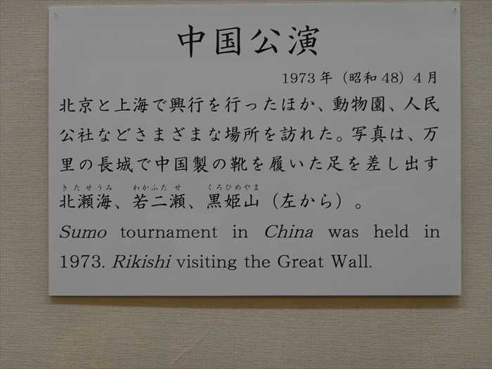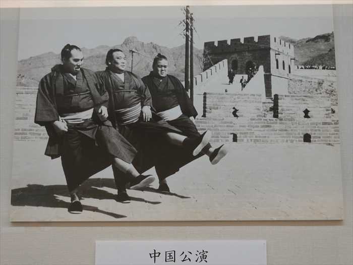 万里の長城で中国製の靴を履いた足を差し出す北瀬海、若ニ瀬、黒姫山(左から)